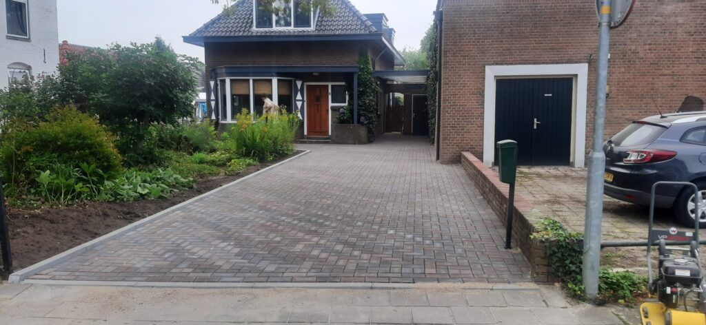 Renovatie voortuin-oprit Zetten;Rooien en afvoeren aanwezige beplanting i.v.m. verbreden oprit / Uitvoeren grondwerk / Leveren en aanbrengen nieuwe stenen (BKK brons)